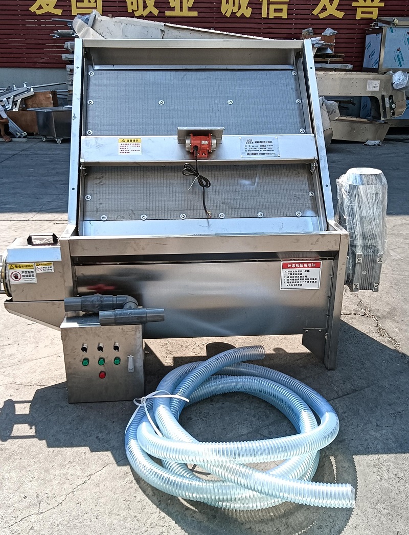 | 干濕分離機 1.原理及處理特點:采用振動篩和螺旋擠壓技術,分離后濾液含固率比例大,物料含水率低 2.應用:針對養殖行業(豬糞、牛糞)等含粗纖維較多的有機廢棄物。 3.優點:結構簡單,運行平穩;占地面積小,土建要求低:自動化程度低;處理量大; 斜篩式固液分離機是一種高效定低能耗的固液分離脫水機械產品,廣泛應用于養殖場糞便處理、 酒槽。 啤酒糟的脫水分離。屠宰場污水的固液分離、污水通過震動篩網過濾和螺旋蛟龍擠壓從 而達到固液分離的作用。 廠家訂購 優惠熱線:17653417203